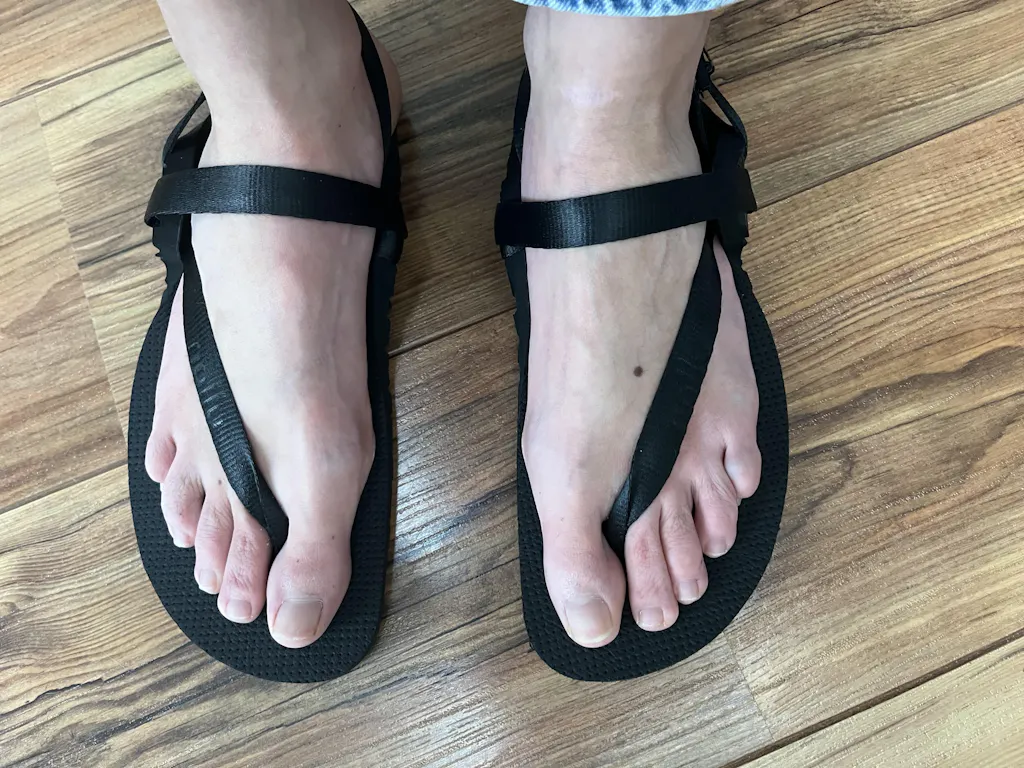 Barefoot sandály Minimus s fixačními křidélky Nallu WingLock. Drží na noze jako ulité. Umožňují maximální vnímání povrchu.